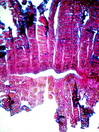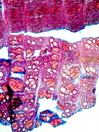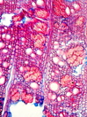 Morphology H, 10 - 30cm Ecology boreal garden Chorology Siberean Xylem Distinct rings, semi-ring-porous, solitary, thick-walled vessels, simple perforations, earlywood vessel diameter 40-70µm, round and scalariform intervessel-pits, thick-walled fibers in groups, parenchyma mainly vasicentric, ray width 3-4 cells, unlignified, homocellular with square and upright cells. Xylem-Code Phloem With ray dilatations, tangential rows of sclereids. Explanations For explanations please see the Feature Characteristics. | Cross section | |