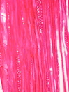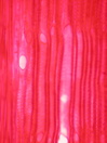 Xylem Distinct rings, ring-porous, vessels mostly solitary, simple perforations, vessel diameter 80-150 µm, fibers thin- to thick-walled, parenchyma paratracheal vasicentric ray width 5-10 seriate, rays variable in form and width, homocellular with square cells. Xylem-Code Phloem Slide missing Explanations For explanations please see the Feature Characteristics. | Cross section Tangential section Radial section | |
