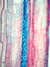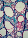 Morphology liana - 10 m Ecology subtropical, coast on rock on rock Chorology cosmopolitean Xylem Indistinct rings, very large solitary vessels and small vessles in groups, simple perforations, large vessel diameter 200-350µm, small vessels 40-50 µm round intervessel-pits, thick-walled fibers in groups, parenchyma apotracheal and paratracheal (bands around fiber groups), ray width 3-5 in width and very high. Heterocellular with many square and upright cells. With included phloem (Caryophyllaceae-type). With many prismatic crystals. Xylem-Code Phloem With ray dilatations, with tangential bands of collapsed sieve tubes, sclereids in irregular round spots. With a few prismatic crystals. Explanations For explanations please see the Feature Characteristics. | Cross section Tangential section Radial section Bark | |