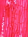 Morphology P, 5-10m Ecology hill cultivated Chorology cosmopolitean Xylem Distinct rings, ring porous, large vessels mainly solitary, small vessels in radial groups, simple perforations, round intervessel pits, with tylosis, vessel diameter >100µm, fibers thick-walled, parenchyma large vasicentric, ray width 2-3cells, homocellular, procument cells, prismatic crystals present, Xylem-Code Phloem With tangential layers of collapsed sieve tubes and tangential rows of sclerenchymatic groups, prismatic crystals present. Explanations For explanations please see the Feature Characteristics. | Cross section Tangential section Radial section Bark | |
