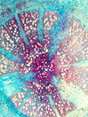Morphology H, 40 - 80cm Ecology hill and mountain meadow Chorology E-European W-Asian Xylem Distinct rings, semi-ring porous, vessels in groups, simple perforations, round and scalariform intervessel pits, vessel diameter 40-70µm, with a few thick-walled fibers, parenchyma paratracheal vasicentric and apotracheal, ray width 3-10 cells, homocellular, procument and square cells. Xylem-Code Phloem Irregular sclerenchymatic groups, with a few prismatic crystals. Explanations For explanations please see the Feature Characteristics. | Cross section Tangential section Radial section Bark | |