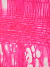 Morphology N , 100-300cm Ecology thermophile zone hedge Chorology Macaronesia Xylem Indistinct rings, vessels dendritic patterns, simple perforations, vessel diameter 60 – 90µm, with helical thickenings, with vestured intervessel pits, fibers thick-walled, parenchyma vasicentric, ray width 3-5 cells, homocellular with procumbent cells. Xylem-Code Phloem Slide missing Explanations For explanations please see the Feature Characteristics. | Cross section Tangential section Radial section | |