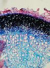 Morphology H, C, 20 - 40cm Ecology Hill and montane zone, medium sites Chorology Eurasian Xylem Distinct rings, semi-ring porous, vessels solitary, small (ca.30microns) vessels thick walled (2 microns), parenchyma thin walled between fibers, rayless, crystals absent. Xylem-Code Phloem Not well structured, groups of sieve cells and parenchyma in radial rows, without crystals. Remarks Cross section: Explanations For explanations please see the Feature Characteristics. | Cross section Bark | |