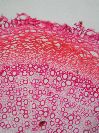 Morphology H, 10 - 40cm Ecology hill to subalpine zone medium site Chorology Eurasian, cosmopolitan Xylem Distinct and indistinct rings, diffuse and semi-ring porous, vessels solitary, vessels small ( Xylem-Code Phloem Uniform anatomy, groups of sieve cells and parenchyma in radial rows, without crystals Remarks Cross section: Explanations For explanations please see the Feature Characteristics. | Cross section Bark | |