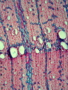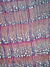 Morphology N , 100-300cm Ecology arid desert Chorology W-North America Xylem Distinct rings, semi-ring porous, vessels solitary, simple perforation, vessel diameter 40-50 µm, fibers with large pits, fibers thick-walled, parenchyma apotracheal, rays 4-7 seriate, homocellular with prostrate cells. Xylem-Code Phloem Uniform cortex, multilayered periderm with regular arranged cells. Explanations For explanations please see the Feature Characteristics. | Cross section Tangential section Radial section Bark | |