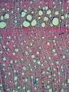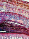 Morphology N , 100-300cm Ecology arid desert Chorology W-North America Xylem Distinct rings, semi-ring to ring porous, vessels solitary, simple perforation, vessel diameter 40-70 µm, fibers with large pits, fibers thin-to thick-walled, parenchyma apotracheal, rays uni and biseriate, heterocellular with prostrate cells and heterocellular with 1 row of upright cells. Xylem-Code Phloem With tangential arranged groups of sieve tubes and collapsed rows of sieve tubes, with prismatic crystals, multilayered periderm with regular arranged cells. Explanations For explanations please see the Feature Characteristics. | Cross section Tangential section Radial section Bark | |