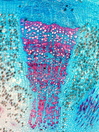 Morphology H, 10 - 40cm Ecology hill and mountain dry meadow Chorology Eurasian Xylem Distinct rings, semi-ring porous, vessels solitary, simple perforation, vessel diameter 15-20 µm, fibers absent parenchyma pervasive, vascular bundles remaining, rays uni and biseriate, homocellular with square and upright cells. With crystal druses in rays. Xylem-Code Phloem With tangential arranged groups of sieve tubes and collapsed sieve tubes With a few small crystal druses. Explanations For explanations please see the Feature Characteristics. | Cross section Tangential section Bark | |