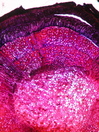 Morphology H, 5 - 10 cm Ecology hill and mountain zone, medium site Chorology Eurasian Xylem Distinct rings, diffuse porous, vessels solitary, simple perforation, vessel diameter 15-30 µm, fibers thick-walled, parenchyma apotracheal, vascular bundles remaining, rays uni and biseriate, homocellular with square and upright cells. Pith with crystal druses . Xylem-Code Phloem Uniform construction. Multilayered periderm with regular arranged cells. Explanations For explanations please see the Feature Characteristics. | Cross section Tangential section Radial section | |