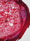 Morphology H, 5 - 10 cm Ecology subalpine and alpine Chorology S-European mountain Xylem Distinct diffuse porous, vessels solitary, simple perforation, vessel diameter 15-20 µm, round and scalariform intervessel pits, fibers absent, parenchyma pervasive, rays absent and multi-seriate, homocellular with square and upright cells. Vascular bundles remaining. Xylem-Code Phloem Uniform phloem. With ray dilatations. Multilayered periderm with regular arranged cells. Explanations For explanations please see the Feature Characteristics. | Cross section | |
