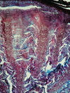 Morphology H, 5 - 10 cm Ecology hill and mountain dry meadow Chorology W-North America Xylem Distinct rings, semi-ring porous, vessels solitary, thick-walled, simple perforation, alternating round and scalariform intervessel pits, vessel diameter 15-30 µm, fibers absent, parenchyma pervasive, rays absent. Vascular bundle form remaining, with crystal druses. Xylem-Code Phloem Uniform cortex, multilayered periderm with regular arranged cells. Explanations For explanations please see the Feature Characteristics. | Cross section | |