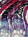 Morphology N 80-200 cm Ecology hill and mountain meadow Chorology SW-Asian Xylem Distinct rings, semi-ring to ring-porous, vessels solitary, and in more or less radial groups, simple perforation, vessel diameter 50-100µm, with thin helical thickenings, fibers with large pits, fibers thick-walled, parenchyma apotracheal rays uniseriate and5-10 seriate, heterocellular with many prostrate. Xylem-Code Phloem With many phloem and a few larger parenchyma cells, rays bended, tissue radially splitted, with crystal druses, multilayered periderm with regular arranged cells, mostly compressed. Explanations For explanations please see the Feature Characteristics. | Cross section Tangential section Bark | |