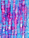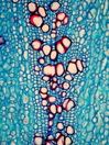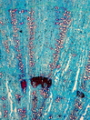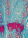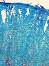 Morphology H, 10 - 40cm Ecology hill and mountain zone, medium site Chorology Eurasian Xylem Distinct rings, semi-ring porous, vessels solitary, simple perforation, intervessel pitting partially scalariform or round alternating, vessel diameter 20-40 µm, fibers absent, parenchyma pervasive, rays uniseriate and multiseriate, all cells upright, vascular bundle form remaining, with crystal druses,. Xylem-Code Phloem Uniform phloem with many crystal druses, multilayered periderm with regular arranged cells. Explanations For explanations please see the Feature Characteristics. | Cross section Tangential section Radial section Bark | |