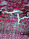 Morphology p, 3-5 m Ecology hill and mountain meadow Chorology mediterranean Xylem Distinct rings, semi-ring-porous, vessels solitary, simple perforation, intervessel pitting round, alternating, with fine helical thickenings, vessel diameter 30-40 µm, fibers thick-walled, parenchyma apotracheal rays 1-2-seriate, homocellular with procumbent cells and heterocellular many prostrate and one row of upright, without crystals. Xylem-Code Phloem Tangential layers of sieve tubes and parenchyma cells, distinct tangential layers of sclereids, with prismatic crystals. Explanations For explanations please see the Feature Characteristics. | Cross section Bark | |