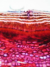 Morphology N 80-200 cm Ecology subalpine and alpine Chorology alpine Xylem Distinct rings, diffuse-porous, vessels in short radial multipels, simple perforation, vessel diameter 40-70µm, large vessel-ray pits, fibers with small pits, fibers thin-to thick-walled, intraannual parenchyma not to recognize and one row of marginal parenchyma, rays uniseriate, heterocellular with prostrate and a few rows of upright marginal cells. Xylem-Code Phloem With tangential layers of sieve-tubes and parenchyma cells, tangential bands of sclerenchyma cells, with prismatic crystals with dilatations. Explanations For explanations please see the Feature Characteristics. | Cross section Bark | |