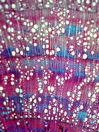 Morphology N 80-150 Ecology mediterranean Chorology W-North America Xylem Distinct rings, semi-ring-porous, vessels in irregular radial and dendritic groups, vessel diameter 20 – 50mµ, simple perforations, with helical thickenings, fibers with small pits, fibers thin to thick-walled, parenchyma not to recognize rays 1-3 seriate, heterogeneous with a few prostrate and many rows of upright cells. Xylem-Code Phloem Sieve tubes and parenchyma in tangential rows, groups of sclerenchyma in tangentially arranged, with prismatic crystals. Explanations For explanations please see the Feature Characteristics. | Cross section Tangential section Radial section Bark | |