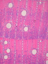 Morphology N , 100-300cm Ecology hill and mountain Chorology mediterranean Xylem Distinct annual rings, diffuse-porous, thick-walled vessels solitary in short radial multipels, vessel diameter 80–160mµ, simple perforations, fibers with small pits, fibers thin to thick-walled, parenchyma paratracheal and in uniseriate terminal layers, rays 2-3 seriate, homogeneous with prostrate cells, with a few prismatic crystals in rays. Xylem-Code Phloem Groups of sieve tubes and parenchyma in tangential layers, tangentially arranged bands of thick-walled sclerenchyma. With prismatic crystals. Explanations For explanations please see the Feature Characteristics. | Cross section Tangential section Radial section | |