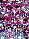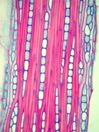 Morphology N , 100-300cm Ecology mediterranean Chorology mediterranean Xylem Distinct annual rings, diffuse-porous, thick-walled vessels solitary in short radial multipels, vessel diameter 80–250mµ, simple perforations, fibers with small pits, fibers thick-walled, parenchyma paratracheal and in uni- and multi-seriate terminal layers, rays mainly uniseriate rarely biseriate, homogeneous with square and upright cells, with a few prismatic crystals in rays. Xylem-Code Phloem Groups of sieve tubes and parenchyma in tangential layers, tangentially arranged bands of thick-walled sclerenchyma. With prismatic crystals. Explanations For explanations please see the Feature Characteristics. | Cross section Tangential section Radial section Bark | |
