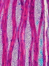 Morphology H, 10 - 40cm Ecology mediterranean Chorology mediterranean Xylem Distinct rings, diffuse-porous, vessels 50 -80 µm in diameter, vessels in short radial multiples, arranged in intra anual tangential rows, simple perforations, intervessel pits scalariform, with thin-walled tylosis, fibers thin to thick-walled, parenchyma paratracheal and marginal, ray width 2-6 cells with sheet cells, homocellular with upright cells. Xylem-Code Phloem With groups of sieve-tubes, solitary scereids, with many crystal druses in rays and axial parenchyma cells. . Explanations For explanations please see the Feature Characteristics. | Cross section Tangential section Radial section Bark | |