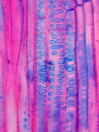 Morphology H, 10 - 40cm Ecology hill and mountain Chorology S-European Xylem Distinct rings, diffuse-porous, vessels 50 -80 µm in diameter, vessels solitary, simple perforations, intervessel pits scalariform, with thin-walled tylosis, fibers thin-walled, parenchyma paratracheal, ray width >10 cells with sheet cells, homocellular with upright cells wit a few crystal druses. Xylem-Code Phloem With groups of sieve-tubes, with a few crystal in axial parenchyma cells. Explanations For explanations please see the Feature Characteristics. | Cross section Tangential section Radial section | |