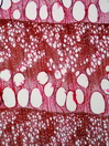 Morphology P 10-20m Ecology hill and mountain Chorology SE-European, SW-Asia Xylem Distinct rings, ring porous, often >200 µm in diameter, latewood vessels in diagonal patterns, simple perforations, thin-walled tylosis, fibers thin to thick-walled, parenchyma rare apotracheal and paratracheal, rays homocellular, uniseriate with prismatic crystals in ray cells Xylem-Code Phloem Tangential layers of small sieve cells and big, round, parenchyma cells, sieve cells collapse in the second year, sclereids in tangential bands, a few prismatic crystals around the sclerencymatic parts.. Explanations For explanations please see the Feature Characteristics. | Cross section Tangential section Radial section Bark | |