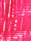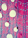 Morphology P 10-20m Ecology mediterranean Chorology S-European Xylem Indistinct rings, ring porous, often 50-100 µm in diameter, latewood vessels in diagonal patterns, perforations, thin-walled tylosis, with vasicentric tracheids, fibers thin to thick-walled, fibers with large round pits, parenchyma apotracheal and paratracheal, uniseriate rows of tangential parenchyma cells, rays homocellular, rays of two distinct sizes: uniseriate and >10 seriate, with a few prismatic crystals in ray cells. Xylem-Code Phloem Tangential layers of small sieve cells and big, parenchyma cells, sieve cells collapse in the second year, sclereids in tangential bands, a few prismatic crystals around the sclerencymatic parts. Explanations For explanations please see the Feature Characteristics. | Cross section Tangential section Radial section Bark | |