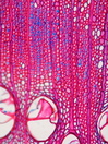 Morphology P 10-20m Ecology hill and mountain, dry Chorology S-European Xylem Distinct rings, ring porous, often >200 µm in diameter, latewood vessels in diagonal patterns, abrupt change between large erlywood and smaller latewood vessels simple, perforations, thin-walled tylosis, with vasicentric tracheids, fibers thin to thick-walled, fibers with small slit-like pits (libriform) and fibers with large round pits, parenchyma apotracheal and paratracheal, uniseriate rows of tangential parenchyma cells, rays homocellular, rays of two distinct sizes: uniseriate and >10 seriate, with a few prismatic crystals in ray cells Xylem-Code Phloem Tangential rows of sieve-tubes, parenchyma cells and sclerenchyma. Sieve tubes collapsed in older phloem, large rays sclerotised. With many prismatic crystals. Explanations For explanations please see the Feature Characteristics. | Cross section Tangential section Radial section Bark | |