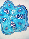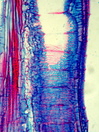 Morphology liana annual shoot Ecology hill and mountain Chorology N-America Xylem Only one ring, vessels predominatly solitary, vessel diameter 50-100µm, simple perforation, intervessel pits opposite, round, fibers absent, parenchyma paratracheal and pervasive, ray width >10 seriate, unlignified, all ray cells upright, phloem groups in the pith (bi-collateral vascular bundle) with raphides. Xylem-Code Phloem Simple structured, distinct ray dilatations, band of sclerenchyma in the cortex. Explanations For explanations please see the Feature Characteristics. | Cross section Radial section Bark | |