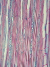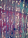 Morphology H, 40 -100cm Ecology arid desert Chorology Sahara Xylem Distinct growth zones, diffuse porous, 20-50 µm in diameter, vessels in long radial multiples, simple perforations, fibers thin-to thick-walled with small pits, parenchyma paratracheal, with rays 2-3, heterocellular with central prostrate and many marginal upright cells, Xylem-Code Phloem Phloem with ray dilatations, round sclerenchymatic groups in more or less distinct tangential rows. Explanations For explanations please see the Feature Characteristics. | Cross section Tangential section Radial section Bark | |