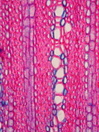 Morphology N 80-150 Ecology arid Chorology W-North America Xylem Indistinct growth zones, vessels 20-40 µm in diameter, vessels in long radial multipels, simple perforations, fibers thin-to thick-walled with small pits, parenchyma paratracheal, rays 3-5 seriate with cells of different sizes, heterocellular with central prostrate and a few marginal upright cells, Xylem-Code Phloem Phloem with ray dilatations, round sclerenchymatic groups in more or less distinct tangential rows. Explanations For explanations please see the Feature Characteristics. | Cross section Tangential section Radial section Bark | |