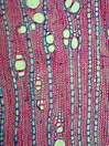 Morphology N, 100-300cm Ecology arid Chorology Sahara Xylem Distinct growth zones, vessels 40-80 µm in diameter, vessels in long radial multipels, simple perforations, fibers thick-walled with small pits, parenchyma paratracheal, rays 1-2 seriate, homocellular with mostly square cells- Xylem-Code Phloem Slide missing Explanations For explanations please see the Feature Characteristics. | Cross section Tangential section Radial section Bark | |