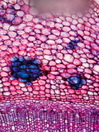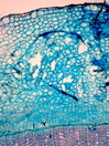 Morphology H, 10 - 40cm Ecology mountain and subalpine Chorology European Xylem Only one ring, vessels 20-40 µm in diameter, vessels radial multipels, simple perforations, vessels thin-walled, pits scalariform or small in opposite position, fibers thin-walled with small pits, fibers in straight radial lines, with tension wood, parenchyma not to recognize, rays uniseriate, homocellular with square and upright cells, Xylem-Code Phloem Phloem with small groups of sieve tubes, enlarged chambers with raphides surrounded by mucilage. Explanations For explanations please see the Feature Characteristics. | Cross section Bark | |