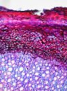 Morphology C, 1-3 cm, cushion plant Ecology Alpine Zone, medium sites Chorology Arctic- alpine. Xylem Distinct and indistinct rings, diffuse porous and semi-ring porous, vessels solitary, vessels small (20-30 microns) vessels thick walled (2 microns), parenchyma thin walled between vessels, rayless in cross section, crystals absent, included phloem. Xylem-Code Phloem Uniform anatomy, groups of sieve cells and parenchyma in radial rows, without crystals. Remarks Cross section: Explanations For explanations please see the Feature Characteristics. | Cross section Bark | |