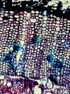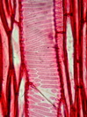 Morphology H, 40 -100cm Ecology hill and mountain Chorology S-European Xylem Distinct rings, diffuse porous, vessels 60-100 µm in diameter, vessels solitary, simple perforations, vessels thick-walled, pits round in opposite position, with tylosis, fibers absent, parenchyma pervasive, rays 2-3 seriate, included layers of periderm, consisting on one layer of phelloderm and a few layers of phellem (cork), with muscillage cells and raphides. 1,3,9,13,20,22,39.1,41,50,61,70,79.1,117,1365, 135.1,R7.2.R10, R12 Xylem-Code Phloem Phloem consisting on parenchymatic tissue and, enlarged chambers with raphides surrounded by mucilage. Explanations For explanations please see the Feature Characteristics. | Cross section Tangential section Radial section Bark | |