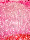 Morphology H, 40 -100cm Ecology hill and mountain Chorology Eurasian Xylem Only one ring, vessels 20-40 µm in diameter, vessels solitary and in radial multipels, simple perforations, vessels thin-walled, pits round or small in alternating position, fibers thin-walled with small pits, fibers in straight radial lines, parenchyma not to recognize, rays uniseriate, homocellular with square and upright cells, Xylem-Code Phloem Phloem with small groups of sieve tubes, enlarged chambers with raphides surrounded by mucilage. Explanations For explanations please see the Feature Characteristics. | Cross section | |