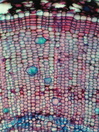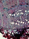 Morphology H, 10 - 40cm Ecology boreal riparean Chorology Eurasian N-America Xylem Distinct rings, ring porous, vessels 60-100 µm in diameter, vessels solitary, simple perforations, vessels thick-walled, pits scalariform or round in opposite position, fibers absent, parenchyma pervasive, rays absent, included layers of periderm, consisting on one layer of phelloderm and a few layers of phellem (cork). With many muscilage ducts containing slime and raphides. Xylem-Code Phloem Phloem consisting on parenchymatic tissue and, enlarged chambers with raphides surrounded by mucilage. Explanations For explanations please see the Feature Characteristics. | Cross section Radial section Bark | |