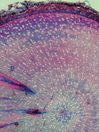 Morphology H, 10 - 40cm Ecology hill and mountain Chorology European Xylem Only one ring, vessels 20-40 µm in diameter, vessels solitary and in radial multipels, simple perforations, vessels thin-walled, pits round or small in alternating position, fibers thin-walled with small pits, fibers in straight radial lines, parenchyma not to recognize, rays uniseriate, homocellular with square and upright cells, Xylem-Code Phloem Phloem uniform, with enlarged chambers with raphides surrounded by mucilage. Explanations For explanations please see the Feature Characteristics. | Cross section Tangential section Radial section | |