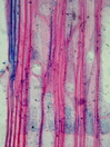 Morphology H, 10 - 40cm Ecology mediterranean Chorology S-European Xylem Distinct rings, diffuse-porous, vessels 20-40 µm in diameter, vessels in short radial multipels and groups, tangential zones of vessels, simple perforations, fibers thin to thick walled, fibers with small pits, with tension wood, parenchyma paratracheal vasicentric, rays homocellular with upright cells, rays, unlignified, uniseriate. Xylem-Code Phloem Distinct groups of sieve-tubes in a parenchymatic tissue. No sclerenchyma cells and crystals. Explanations For explanations please see the Feature Characteristics. | Cross section Tangential section Radial section | |