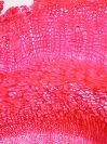 Morphology C, 1-3 cm, cushion plant Ecology Alpine Zone, medium sites Chorology Arctic- alpine. Xylem Distinct and indistinct rings, diffuse porous and semi-ring porous, vessels solitary, , vessels small (20-30 microns) vessels thick walled (2 microns), paratracheal parenchyma, parenchyma thin walled between fibers, rayless in cross section, crystals absent, included phloem. Xylem-Code Phloem Uniform anatomy, groups of sieve cells and parenchyma in radial rows, without crystals. Remarks Cross section: Explanations For explanations please see the Feature Characteristics. | Cross section Bark | |