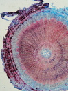 Morphology T 40-80 cm Ecology mediterranean Chorology Eurasian Xylem Distinct rings, diffuse-porous, vessels 20-40 µm in diameter, vessels solitary and in short radial multipels, simple perforations, fibers thin to thick walled, fibers with small pits, with tension wood, with septate fibers, parenchyma not to recognize, rays homocellular with upright cells, rays, unlignified, uniseriate. Xylem-Code Phloem Distinct groups of sieve-tubes in a parenchymatic tissue. No sclerenchyma cells and crystals. Explanations For explanations please see the Feature Characteristics. | Cross section Tangential section Radial section Bark | |