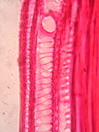 Morphology c, 40 -100cm Ecology mediterranean Chorology SW-European Xylem Distinct rings, diffuse-porous, vessels in groups in radial multiples, simple perforations, with helical thickenings, round intervessel pits, intervessel pits alternate, vessel diameter 50-90 µm, parenchyma paratracheal, ray 3-8seriate, with sheet cells, homocellular with many square and upright cells, with prismatic crystal in rays. Xylem-Code Phloem Slide missing Explanations For explanations please see the Feature Characteristics. | Cross section Tangential section Radial section | |