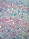 Morphology H, 10 - 40cm Ecology hill and mountain Chorology S-European Xylem Distinct to indistinct rings, diffuse porous, vessels in groups in radial multiples arranged in tangential layers, simple perforations, round intervessel pits, intervessel pits alternate, vessel diameter 50-90 µm, parenchyma paratracheal and in large tangential bands alternating with fiber bands, ray width 3-6 cells, homocellular and heterocellular with many prostrate and a few square and upright cells, with sheet cells. Xylem-Code Phloem Sclereids in tangentially arranged square groups, with ray dilatations, with many crystal druses in rays, with mucilage ducts. Explanations For explanations please see the Feature Characteristics. | Cross section Tangential section Bark | |