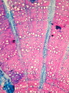 Morphology H, 40 -100cm Ecology arid Chorology N-America Xylem Distinct rings, vessels solitary, simple perforations, round intervessel pits, intervessel pits alternate, vessel diameter 50-70 µm, parenchyma paratracheal and apotracheal diffuse, ray width 3-12 cells, homocellular with square and upright cells, pith with muscialge cells. Xylem-Code Phloem Sclereids in tangentially arranged square groups, with ray dilatations, with many crystal druses in rays, with a few mucilage ducts. Explanations For explanations please see the Feature Characteristics. | Cross section Radial section Bark | |
