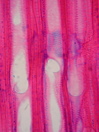 Morphology N 80-150 Ecology subtropical Chorology Macaronesia Xylem Distinct rings, diffuse-porous, vessels solitary vessel diameter 30-50µm vessel frequency 200- mm2, simple perforations, fibers thick-walled, with large pits, parenchyma apotracheal and scanty paratracheal, rays: 1-3 seriate, heterocellular with a few prostrate and many square or upright cells. Xylem-Code Phloem Slide missing Explanations For explanations please see the Feature Characteristics. | Cross section Tangential section Radial section Bark | |