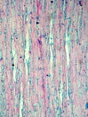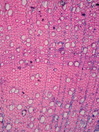 Morphology Z, 5-20 cm Ecology mediterranean Chorology S-European Xylem Distinct rings, diffuse- to semi-ring-porous, vessels solitary vessel diameter 20-40µm vessel frequency 200-300 mm2, simple perforations, fibers thick-walled, with large pits, parenchyma apotracheal and scanty paratracheal, rays uni-seriate rarely to 3-seriate, homocellular with square or upright cells. Xylem-Code Phloem Wit isolated sclerenchyma cells, with many crystal druses. Explanations For explanations please see the Feature Characteristics. | Cross section Tangential section Bark | |