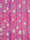 Morphology P 5-10 m Ecology hill and mountain Chorology Europan, W-Asian Xylem Distinct rings, diffuse porous, earlywood vessels solitary and in short radial multipels, simple perforations, earlywood vessel diameter 50-80µm, with helical thickenings, fibers with small pits, with tension wood, axial parenchyma rare or paratracheal, rays 2-3 (4) seriate, homocellular with prostrate cells, with a few prismatic crystals in rays. Xylem-Code Phloem Distinct tangential layers of parenchyma and sieve tubes and sclerenchyma. Sieve tubes collapsed in older rings. Many prismatic crystals. Explanations For explanations please see the Feature Characteristics. | Cross section Tangential section Radial section Bark | |