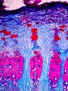 Morphology Ch.15 - 30 cm Ecology Hill to subalpine zone, dry site Chorology Western Alps Xylem Distinct rings, semi-ring porous, vessels solitary, simple perforations, tangential bands with thick walled fibers, paratracheal parenchyma, thin walled marginal parenchyma, ray width 3->10 cells, r1,4,9,13,40.2,50.1,61,70.1,79,89,99,100.2,105,R2,R3,R5 Xylem-Code Phloem Tangential layers of collapsed sieve cells, distinct ray dilatations, groups of sclereids in cortex. Remarks Champex, Botanical Garden, Valais, Switzerland Explanations For explanations please see the Feature Characteristics. | Cross section Tangential section Radial section Bark | |