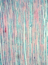 Morphology Ch 10-20 cm Ecology mountain and subalpine Chorology E-European Xylem Distinct rings, semi-ring-porous, vessels solitary, scalariform perforations with 10-15 bars, intervessel pits scalariform and round, vessel diameter 15-20 µm, vessel frequency 300 - 500 mm2, fibers with large pits, fibers thick-walled parenchyma paratracheal , rays uniseriate, homocellular with upright cells., Xylem-Code Phloem Uniform structure Explanations For explanations please see the Feature Characteristics. | Cross section Tangential section Radial section Bark | |