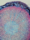 Morphology T, 5 - 15 cm Ecology Hill and mountaine zone, dry site Chorology Mediterranean, Western Asia Xylem Only one ring, tangential rows of vessels, simple perforations, tangential bands of fibers, paratracheal parenchyma, rayless, sometimes, few large rays. Xylem-Code Phloem Tangential layers of collapsed sieve cells, of sclerenchymatic groups, distinct ray dilatations, groups of sclereids in cortex. Remarks Briançon, F Explanations For explanations please see the Feature Characteristics. | Cross section Radial section Bark | |