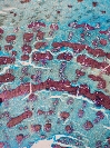 Morphology Ch, 10 - 50 cm Ecology Hill and mountaine zone, dry site, cultivated Chorology Mediterranean Xylem Distinct rings, semi-ring porous, vessels solitaryand in groups, tangential rows of vessels, simple perforations, tangential bands with thick walled fibers, paratracheal parenchyma, thin walled marginal parenchyma, rayless, sometimes, few large rays. Xylem-Code Phloem Tangential layers of collapsed sieve cells, and sclerenchymatic groups, groups of sclereids in cortex. Remarks Birmensdorf, cultivated, Zürich, Switzerland Explanations For explanations please see the Feature Characteristics. | Cross section Tangential section Radial section Bark | |