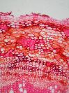 Morphology H, 20-40cm Ecology Subalpine, alpine Chorology S-European-montane Xylem Distinct rings, semi-ring porous, in groups, vestured pits, tangential bands with thick walled fibers, paratracheal parenchyma, thin walled marginal parenchyma, rayless. Xylem-Code Phloem Tangential layers of collapsed sieve cells, radial rows of parenchyma cells, distinct ray dilatations, groups of sclereids in primary bark. Remarks Cross section: Explanations For explanations please see the Feature Characteristics. | Cross section Radial section Bark | |